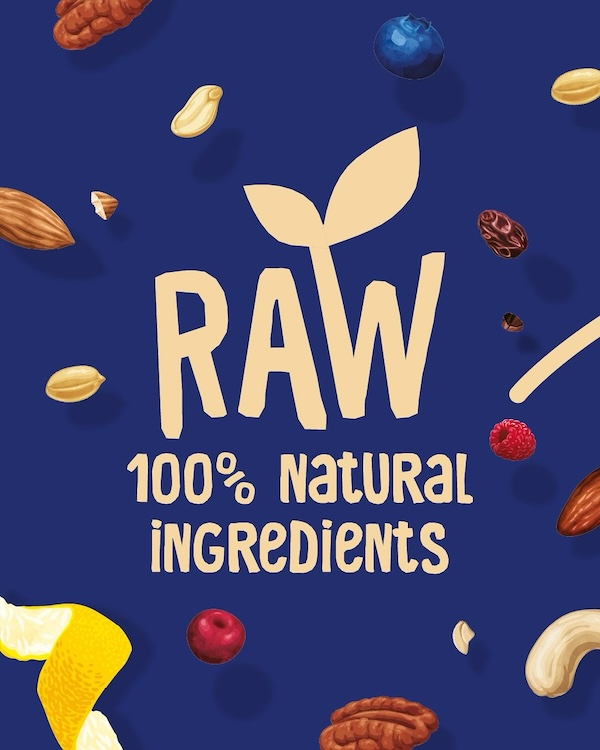 Onze nākd. fruit & notenrepen zijn 100% natuurlijk! Fruit en noten worden gemixt en koud geperst tot een raw bar. ‘Raw’ betekent geen bakken of koken, zo blijven vitamines, mineralen en antioxidanten behouden. ‘Cold pressed’ geeft aan dat we alles zonder hitte persen, wat zorgt voor een reep zonder kunstmatige toevoegingen.