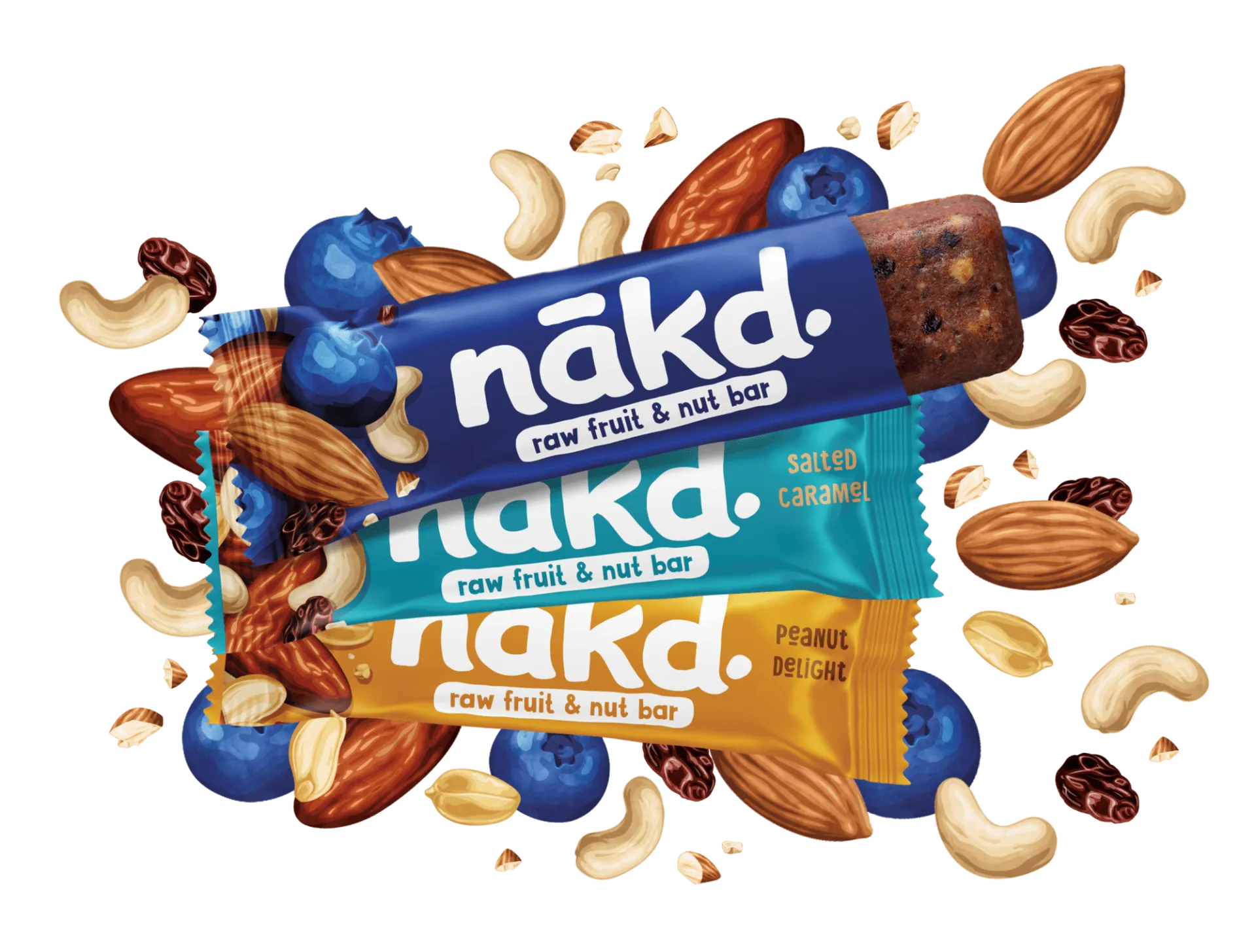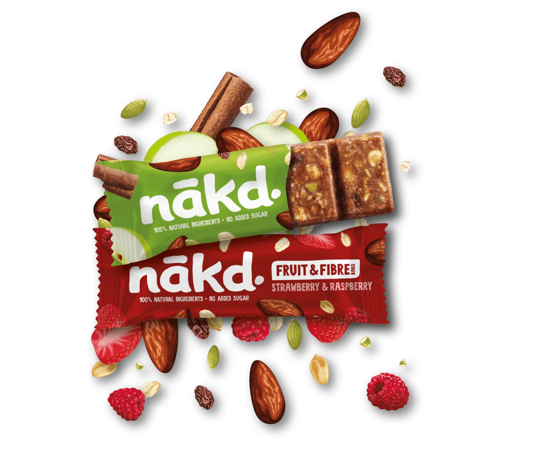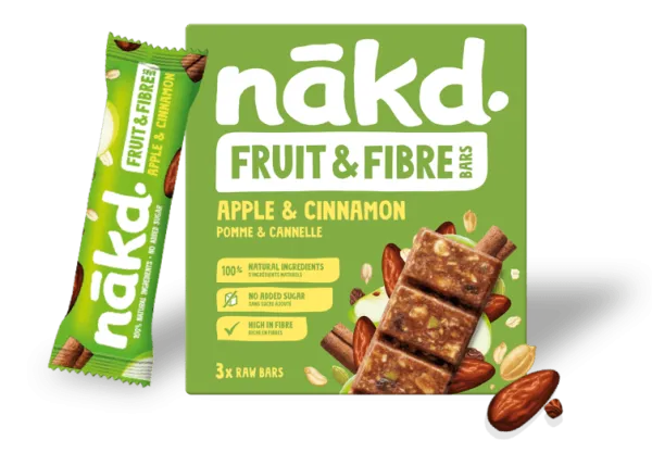 nākd. Fruit & Fibre bars are made with 100% natural ingredients and packed with fruit, nuts, seeds and grains. No added sugar and high in fibre!