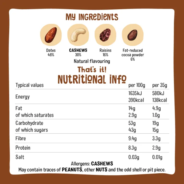 Cocoa lovers, this one’s for you! Our Cocoa Delight bar blends fruit and nuts into a rich, cocoa-packed snack that’s simple and satisfying. We keep it simple: 100% natural, vegan ingredients with no added sugar. Everything is cold-pressed without heat, so all that cocoa taste stays pure and delicious.
